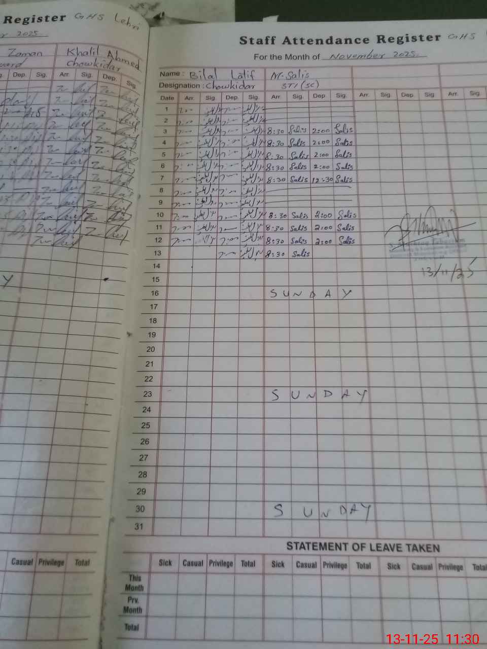 | 37**** | Na**** UlSa**** | Contract | 5 | 4 | 0 | 0 | 0 | 0 | 0 | 0 | 5 | Exam Duty | |
