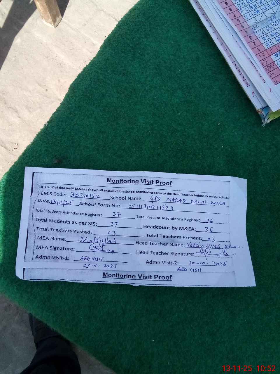 | EMIS Code: 38310152 | Name of School: GPS MADAD KHAN WALA PO TRAG ISA KHEL MIANWALI | |||
