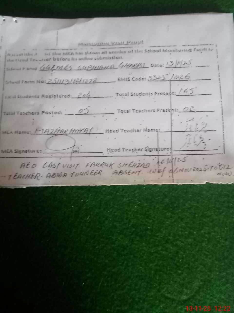 | EMIS Code: 33251026 | Name of School: GGCMES SUBHIANA GHARBI (Newly upgraded 2025) | |||