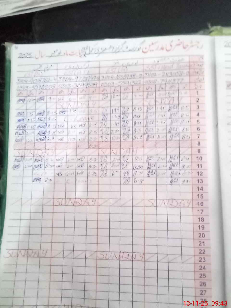 | CNIC | Full Name | Designation | R/C | Absence During Last Calender Month |