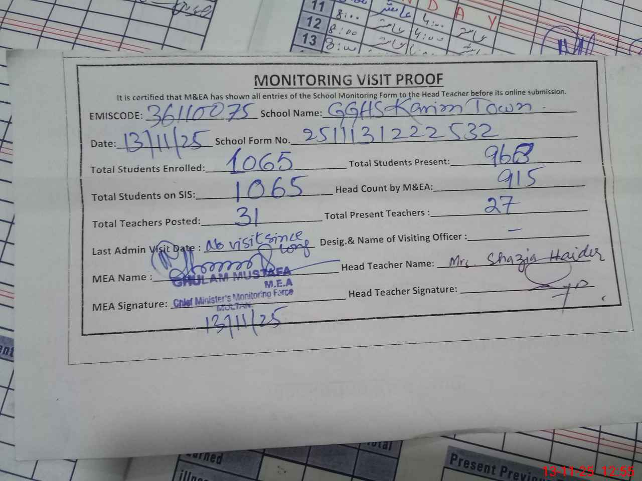 | EMIS Code: 36110075 | Name of School: GGHS KARIM TOWN NEAR CHOWK KUMHARAN WALA MULTAN | |||