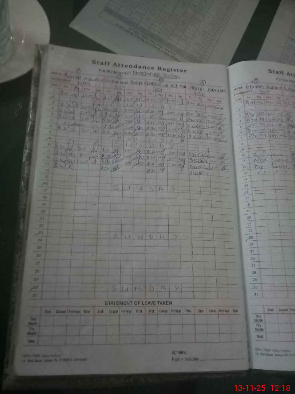 | 35**** | Na**** UdDi**** Ba**** | ESE General Arts | Regular | 0 | 0 | 0 | 0 | 0 | 0 | 0 | 0 | 0 | Absent (Un-Authorized) |