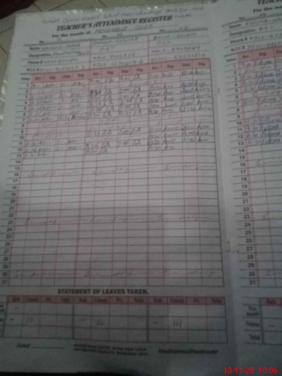 | Name: KA**** AY**** Designation: (School Headmaster's/Headmistress's) PST Phone/Cell Number: 03**** |