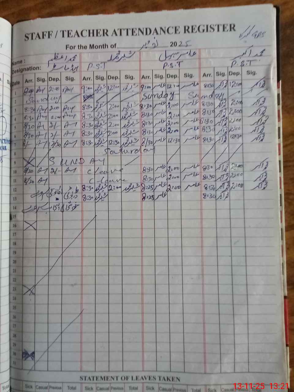 | Name: Mu**** Az**** Designation: (School Headmaster's/Headmistress's) PST Phone/Cell Number: 03**** |