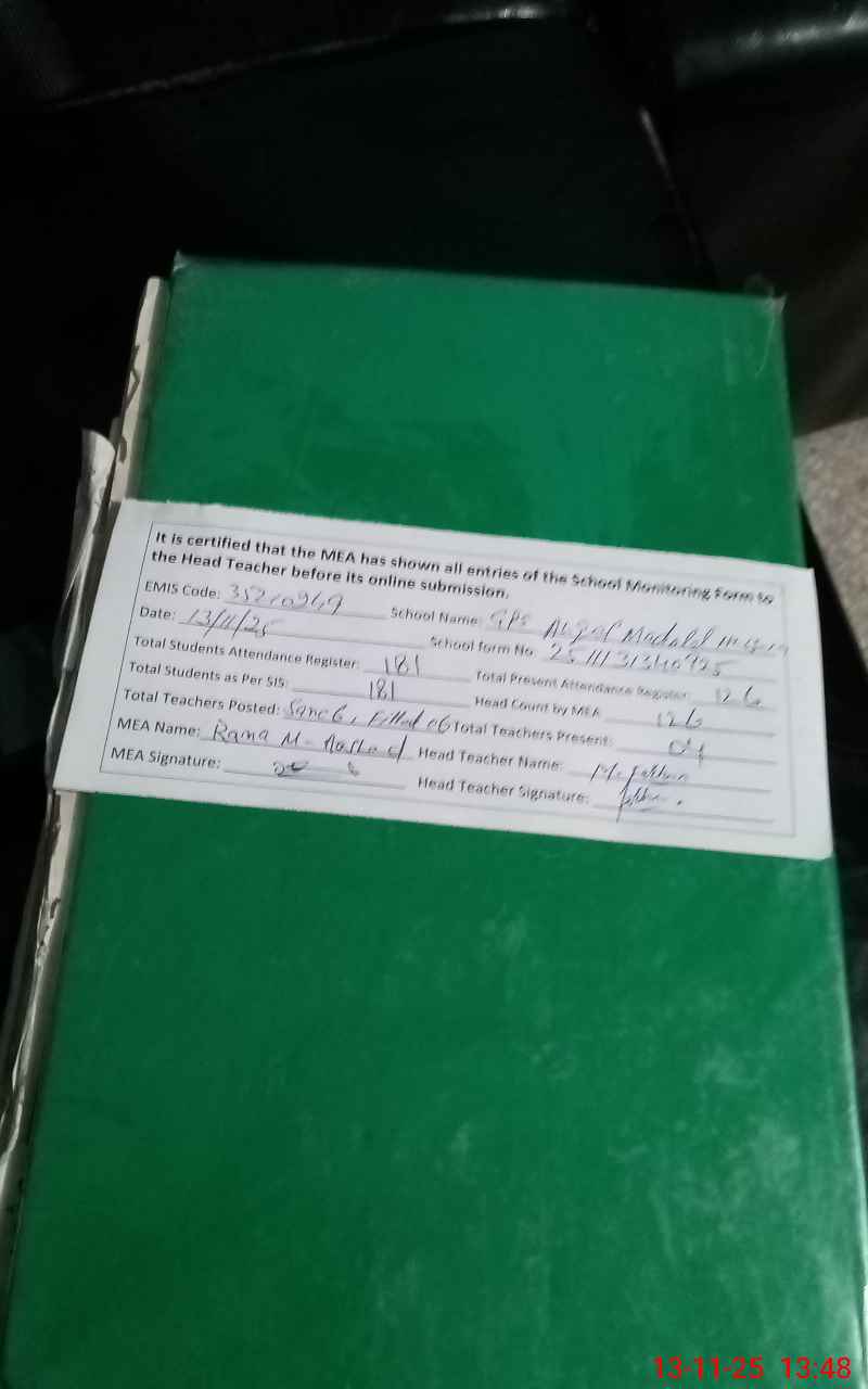 | Attendance Register | Head Teacher | MEA with School | Visit Proof |