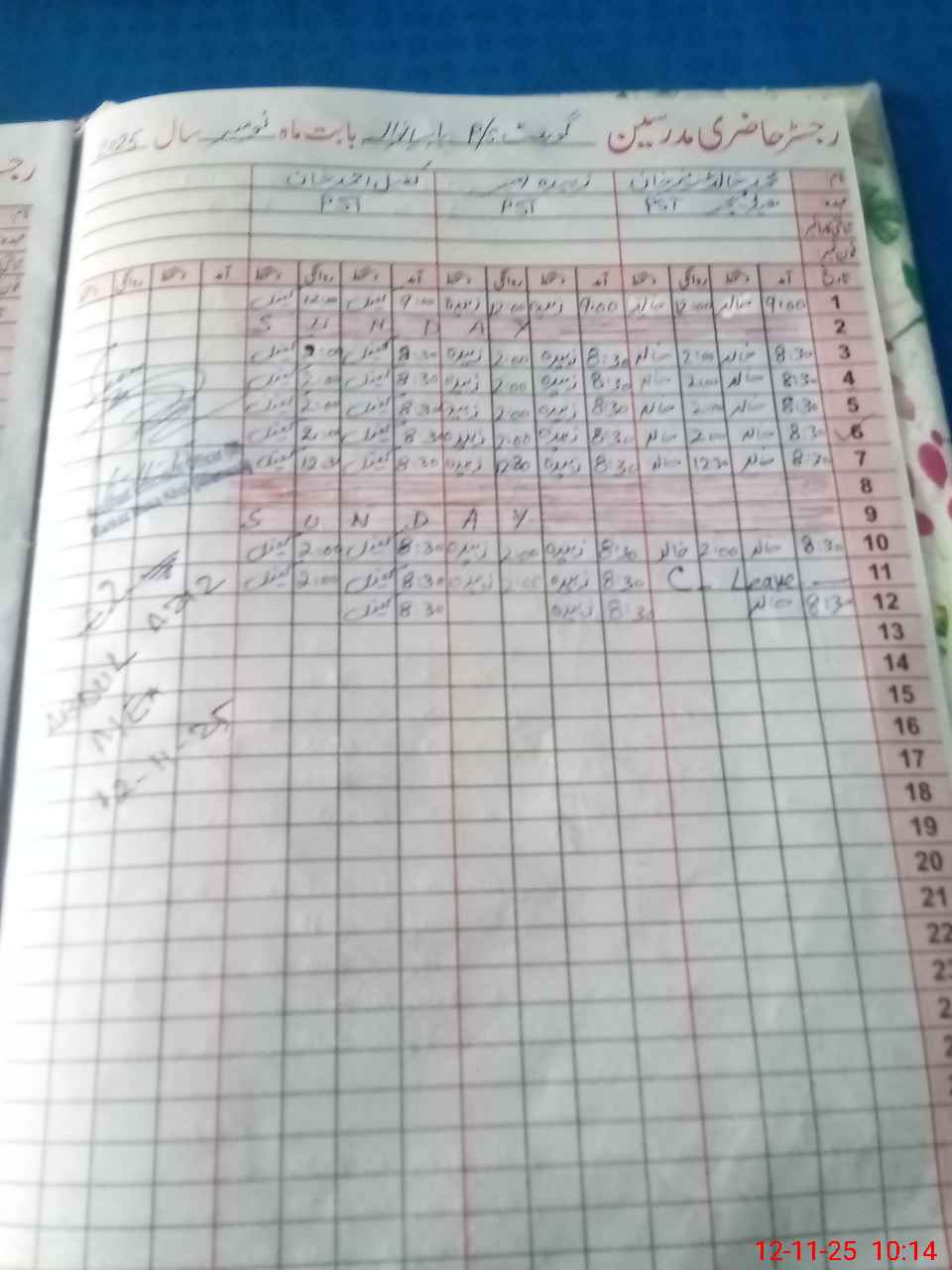 | CNIC | Full Name | Designation | R/C | Absence During Last Calender Month |