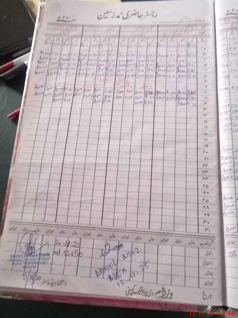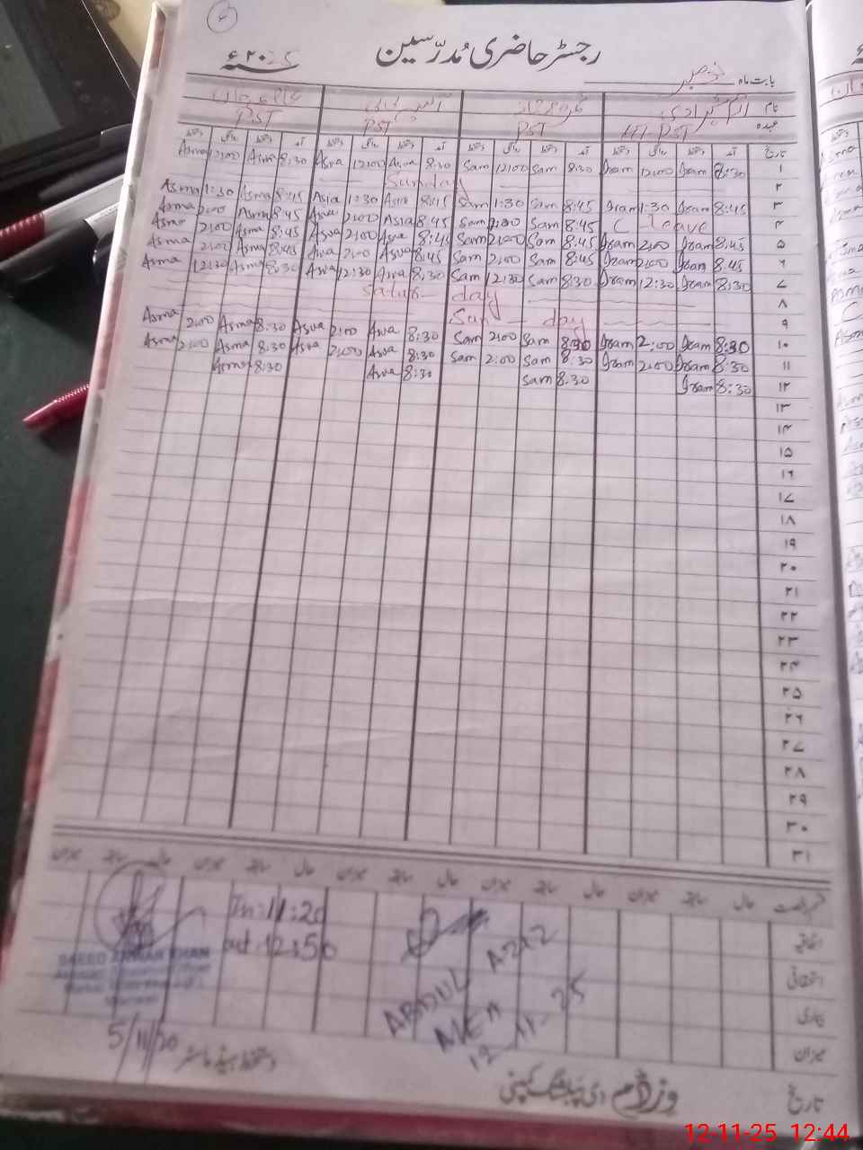 | CNIC | Full Name | Designation | R/C | Absence During Last Calender Month |