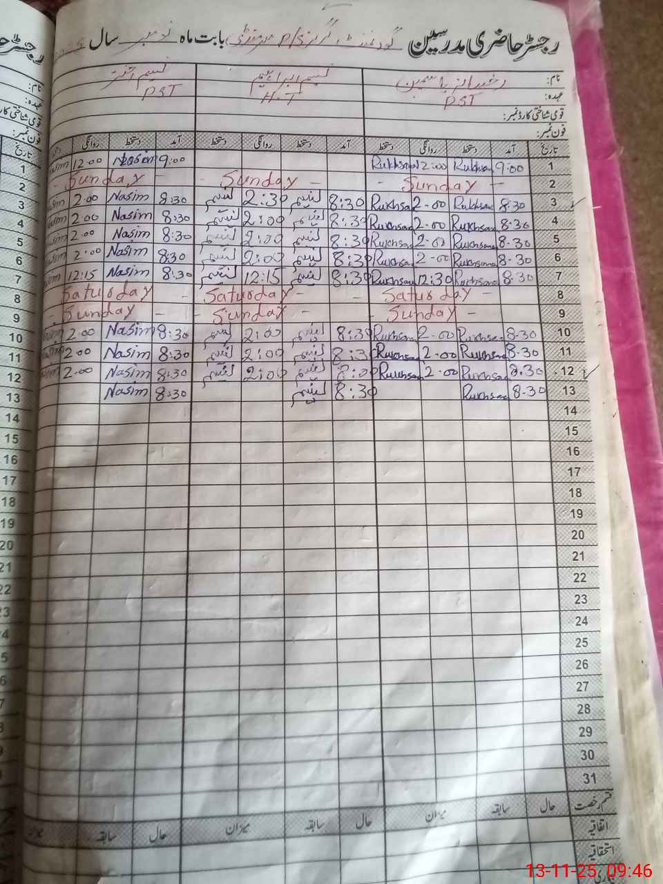 | Name: NA**** IB**** Designation: (School Headmaster's/Headmistress's) PST Phone/Cell Number: 03**** |