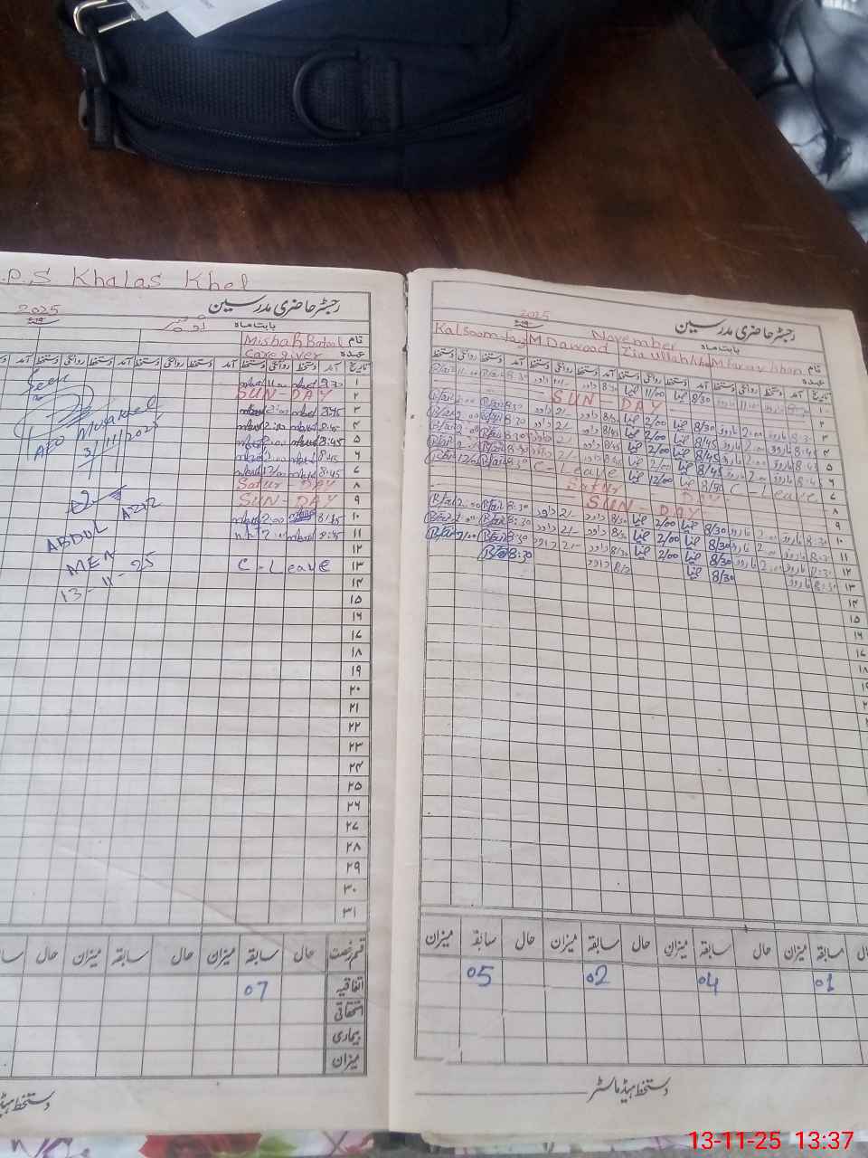 | CNIC | Full Name | Designation | R/C | Absence During Last Calender Month |
