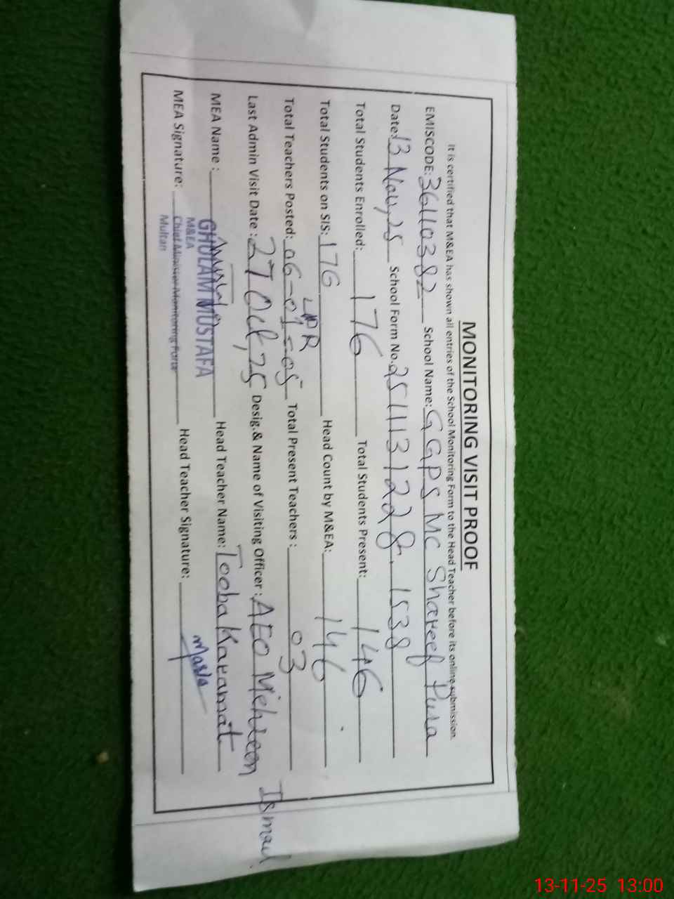 | EMIS Code: 36110382 | Name of School: GGPS MC SHAREEF PURA | |||