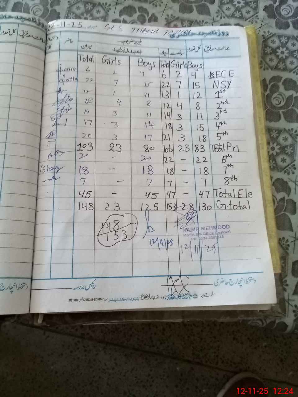 | Name: Mu**** Om**** Kh**** Designation: (School Headmaster's/Headmistress's) HEADMASTER Phone/Cell Number: 03**** |