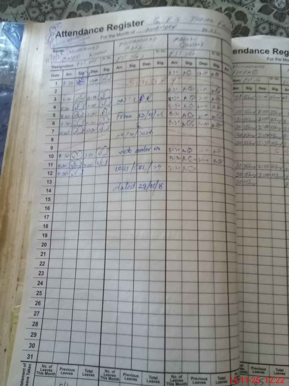 | CNIC | Full Name | Designation | R/C | Absence During Last Calender Month |