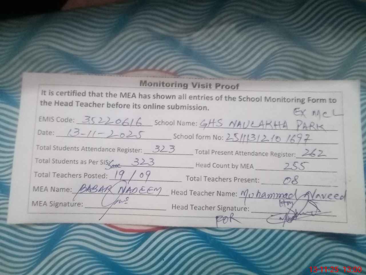 | EMIS Code: 35220616 | Name of School: GHS NAULAKHA PARK EX-MCL (Newly Upgraded) | |||