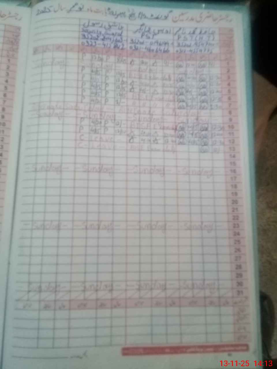 | CNIC | Full Name | Designation | R/C | Absence During Last Calender Month |