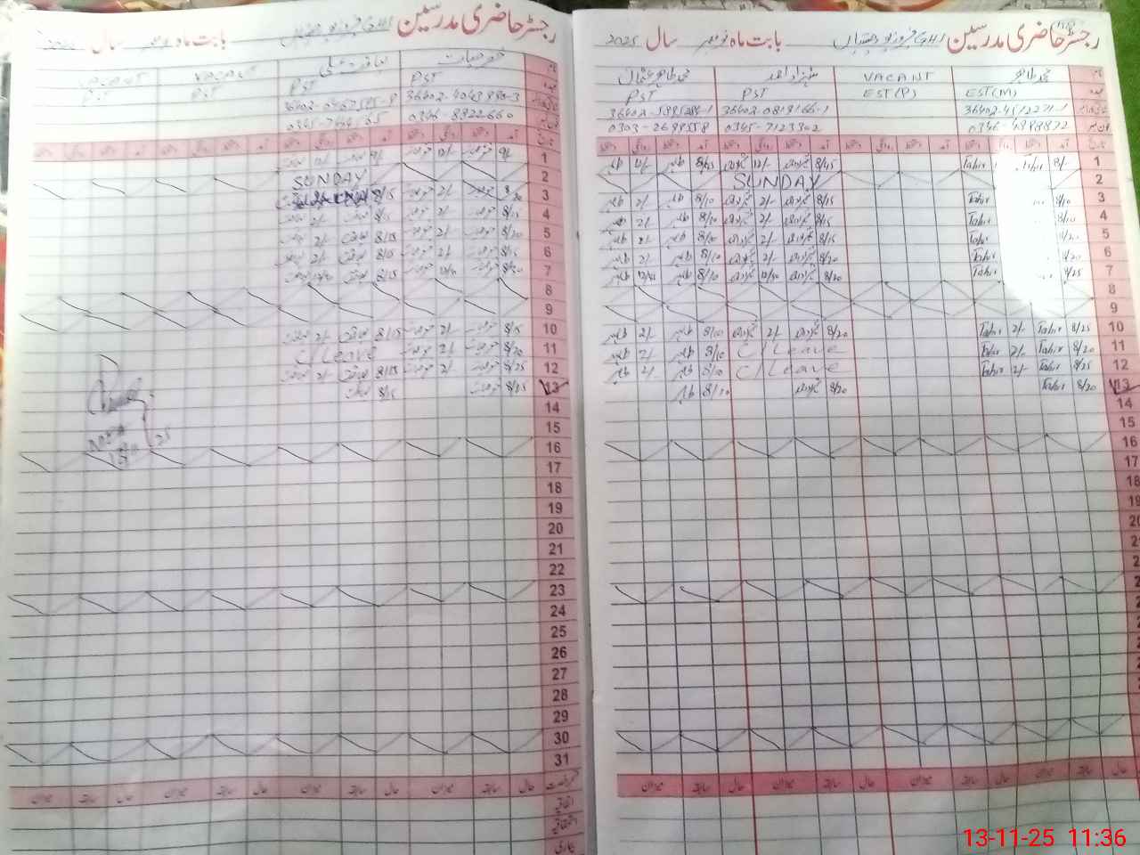 | CNIC | Full Name | Designation | R/C | Absence During Last Calender Month |