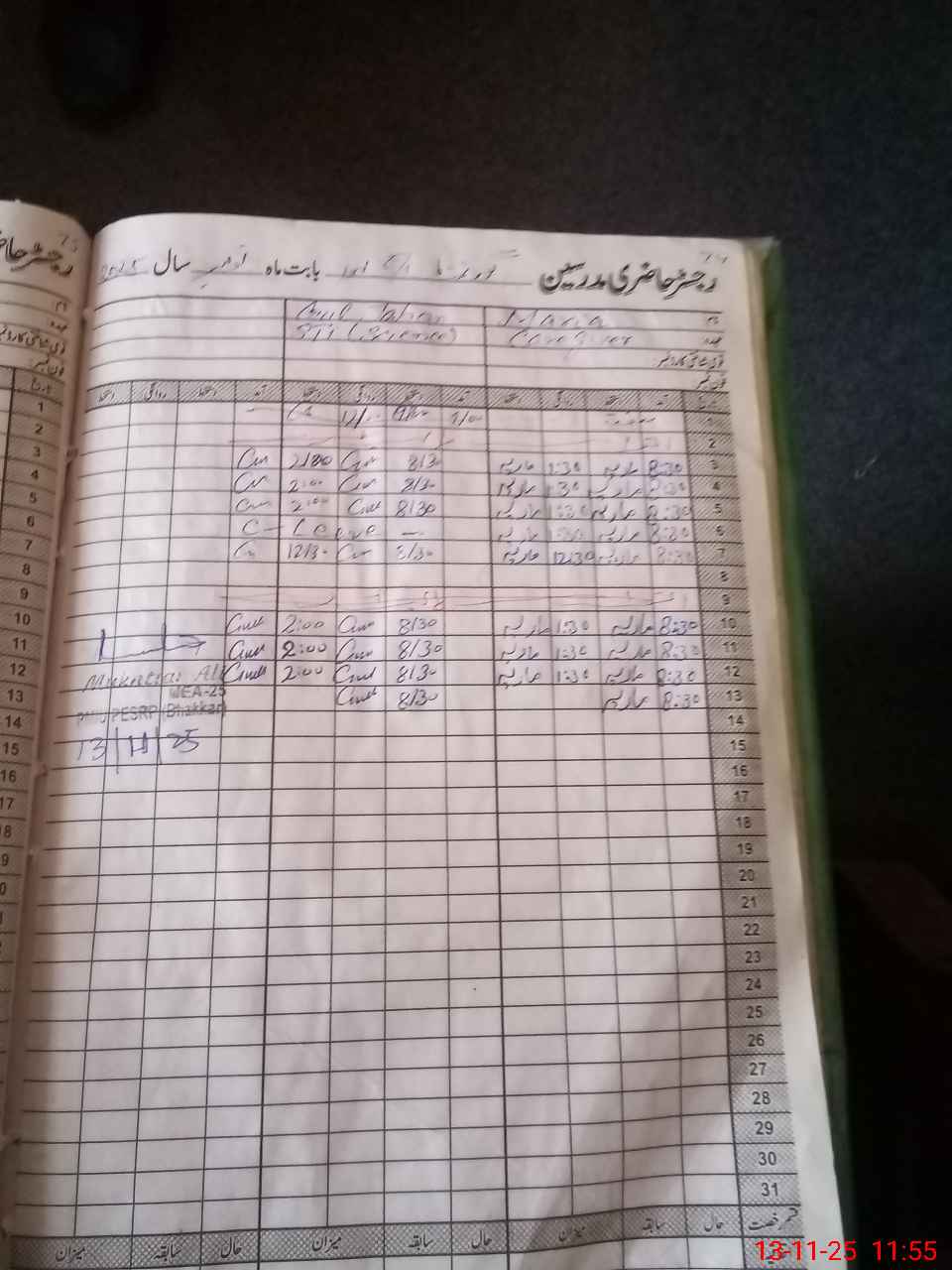| CNIC | Full Name | Designation | R/C | Absence During Last Calender Month |