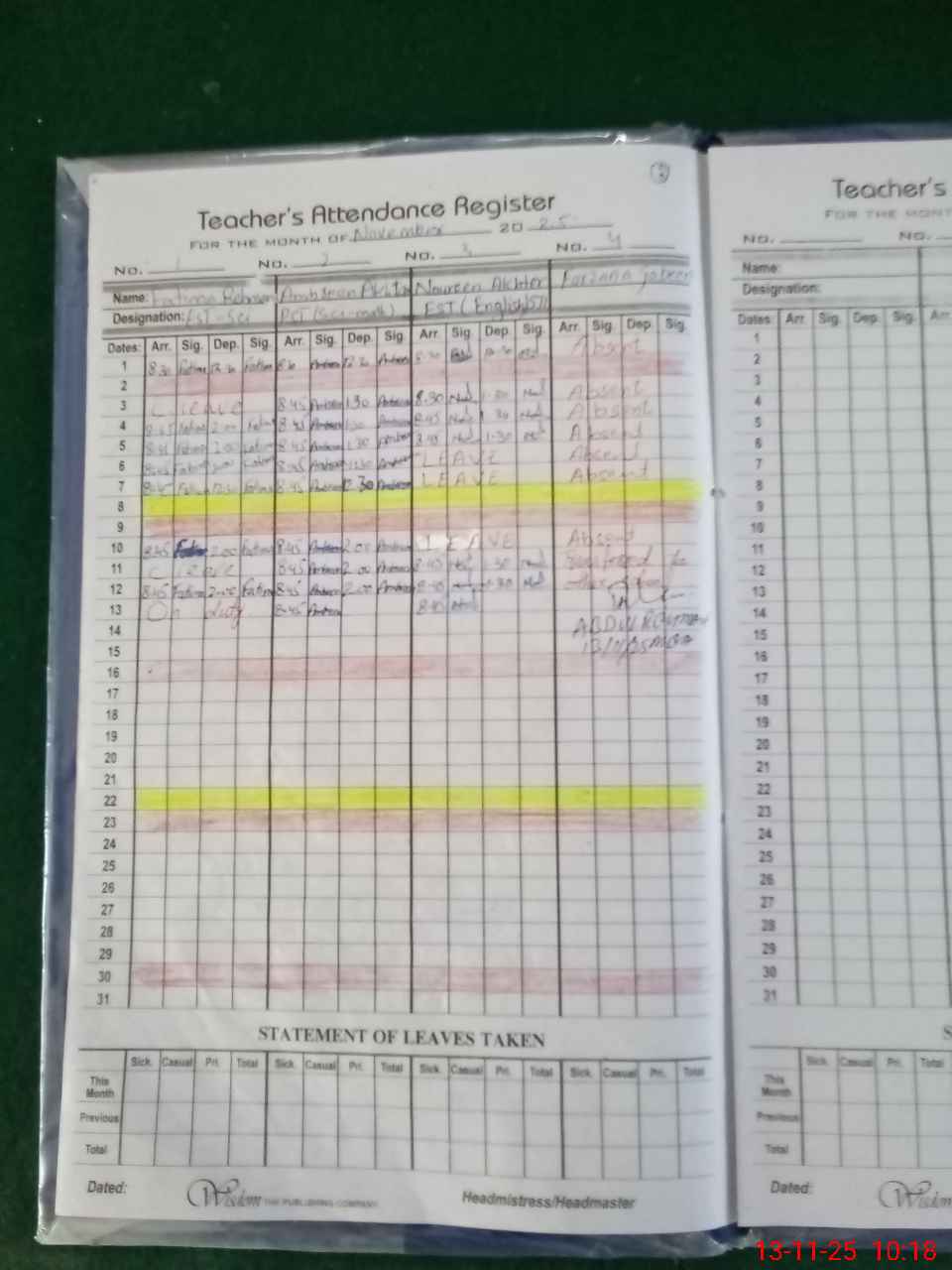| Leave | Duty | Absent | Maternity | Medical | Ex- Pak |