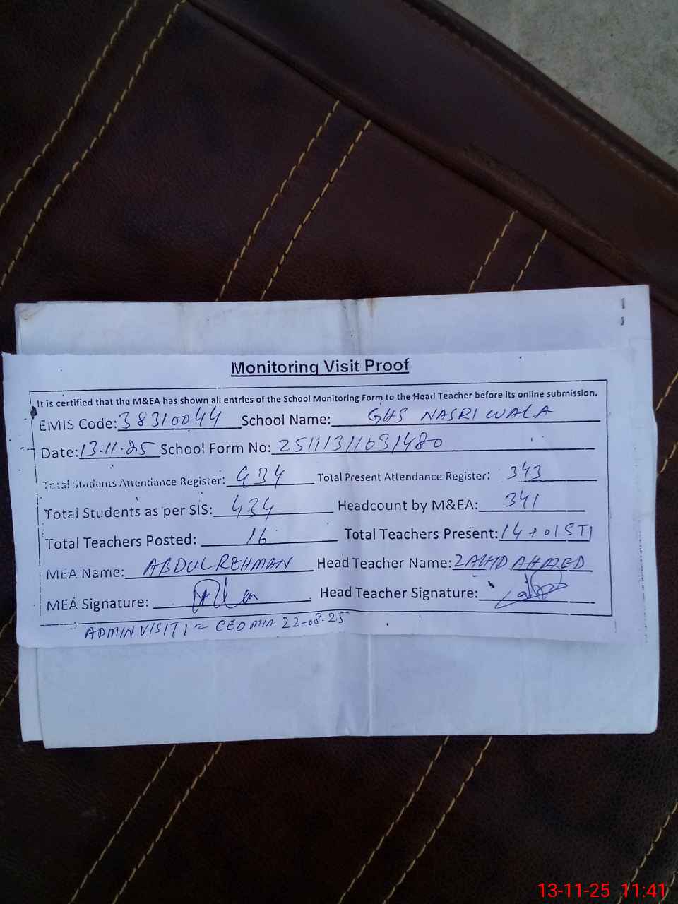 | EMIS Code: 38310044 | Name of School: GHS NASRI WALA | |||