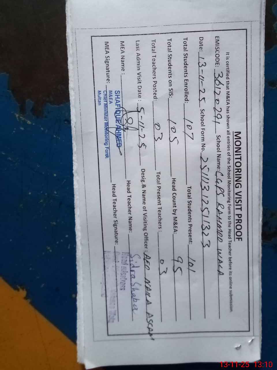 | EMIS Code: 36120291 | Name of School: GGPS RAHMO WALA SHUJABAD | |||