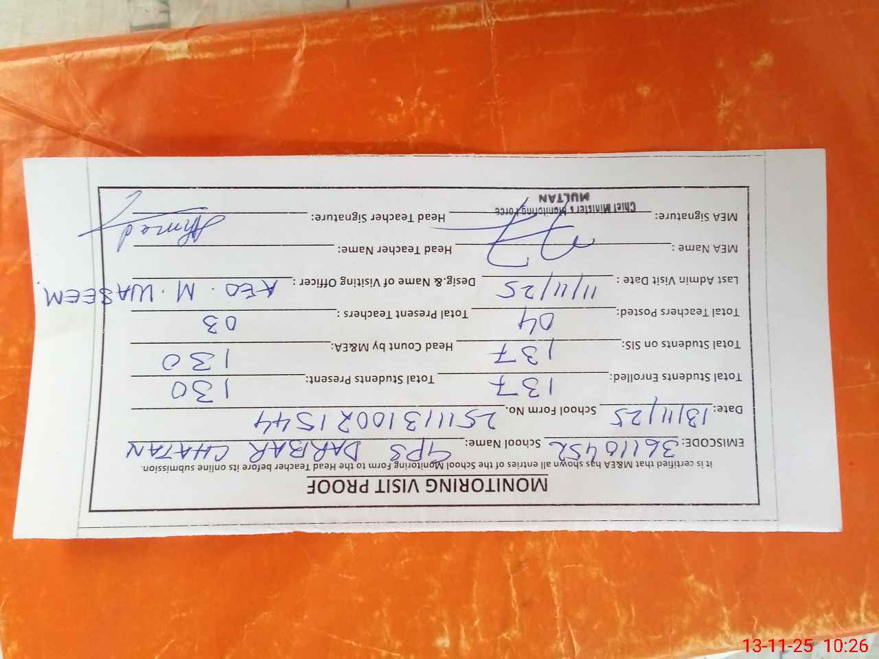 | EMIS Code: 36110452 | Name of School: GPS DARBAR CHATTEN SHAH | |||