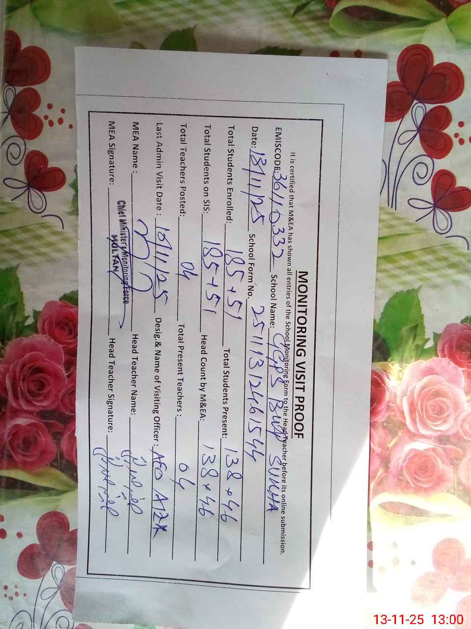 | EMIS Code: 36110332 | Name of School: GGPS BAHAWAL PUR SUKHA QASBA MARAL ROAD | |||