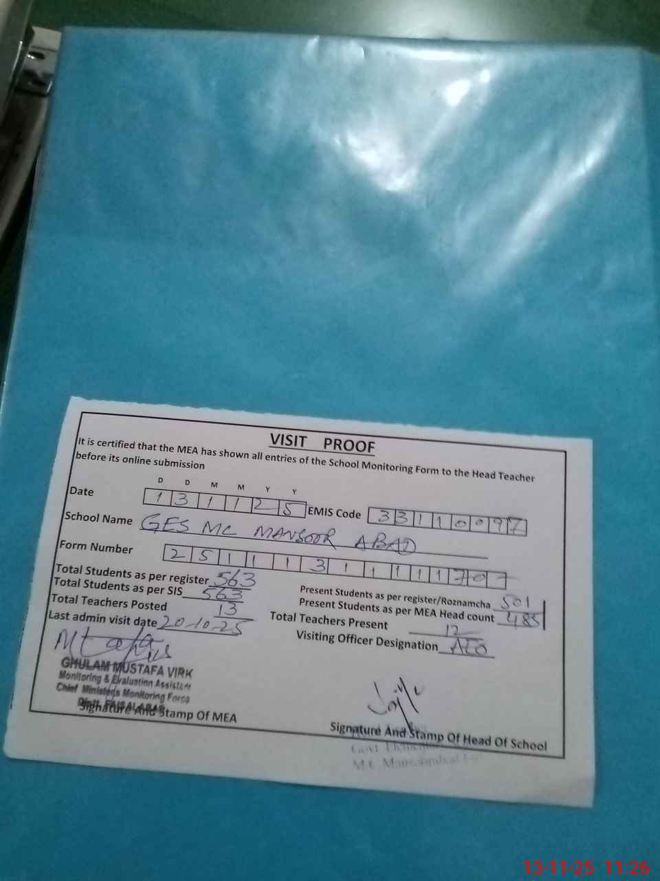 | EMIS Code: 33110097 | Name of School: GES MC MANSOOR ABAD FSD | |||
