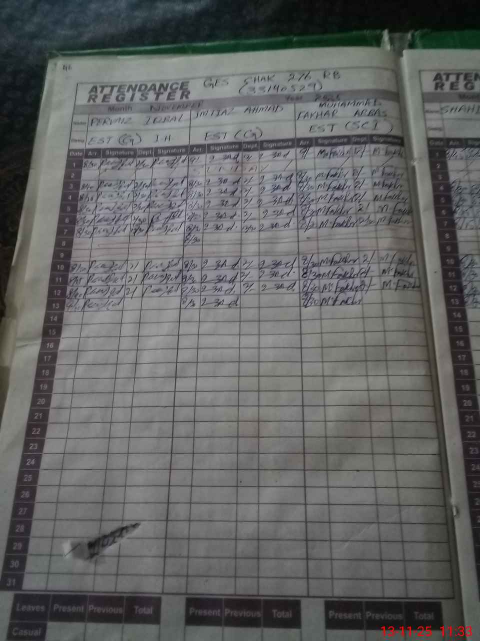 | CNIC | Full Name | Designation | R/C | Absence During Last Calender Month |