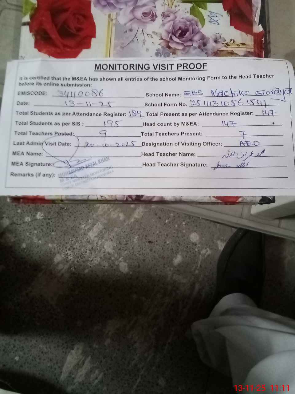| EMIS Code: 34110086 | Name of School: GES MACHIKE GORAYA | |||
