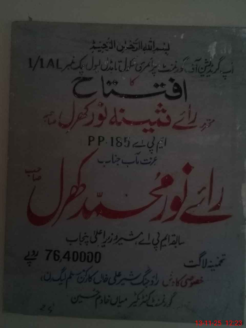 | PP No.: 184 | NA No.: 143 | Mauza: 1/1AL | UC Name: 4/1-AL KALAN | UC No.: 61 |