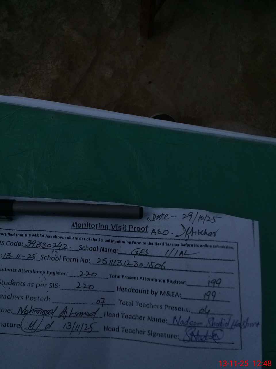 | EMIS Code: 39330242 | Name of School: GES CHAK NO 1/1-AL | |||