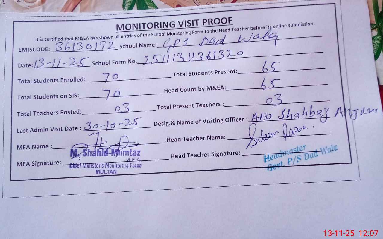 | EMIS Code: 36130192 | Name of School: GPS DAD WALA BASTI DAD WALI MUTTI TAL | |||