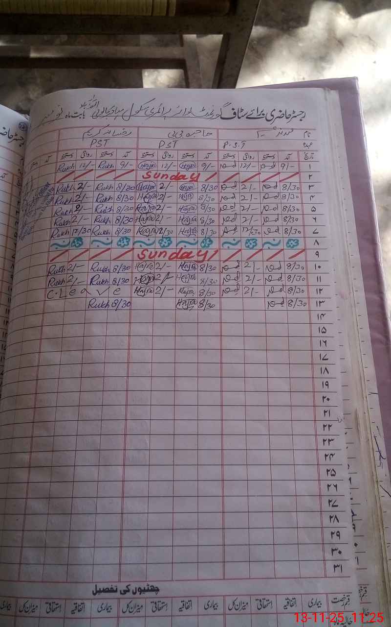 | CNIC | Full Name | Designation | R/C | Absence During Last Calender Month |