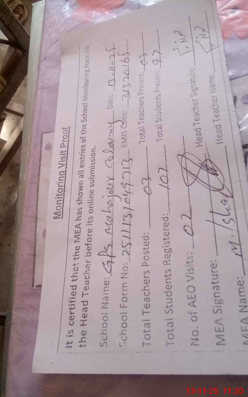 | EMIS Code: 31320165 | Name of School: GPS MAHAJAR COLONY ALLAH ABAD | |||