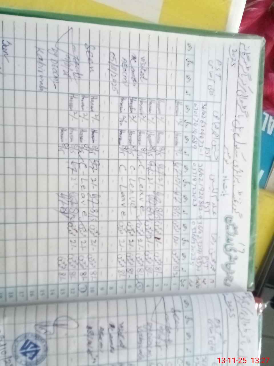 | CNIC | Full Name | Designation | R/C | Absence during last cal. month |