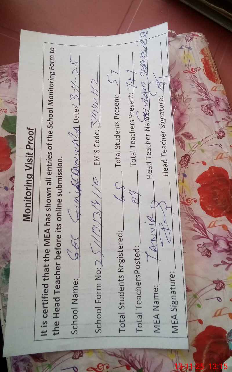 | Attendance Register | Head Teacher | MEA with School | Visit Proof |