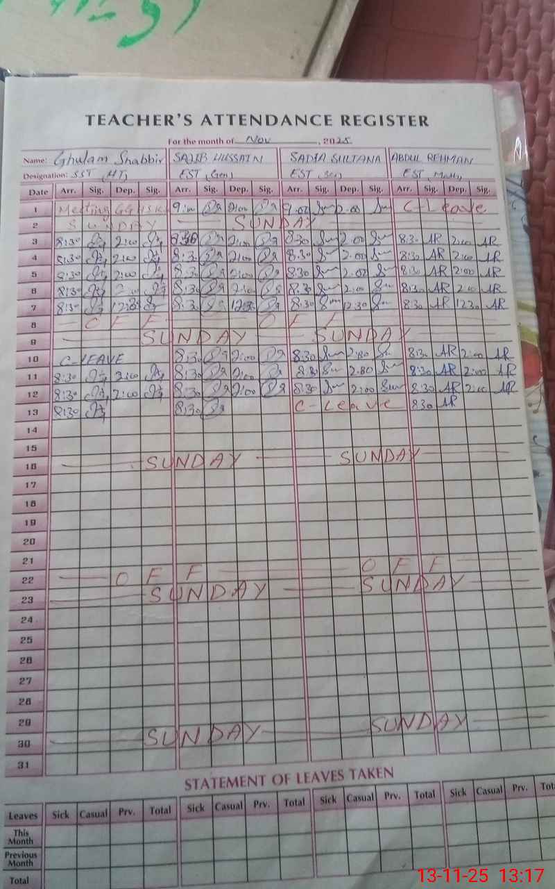 | Name: Gh**** Sh**** Designation: (School Headmaster's/Headmistress's) SST Phone/Cell Number: 03**** |