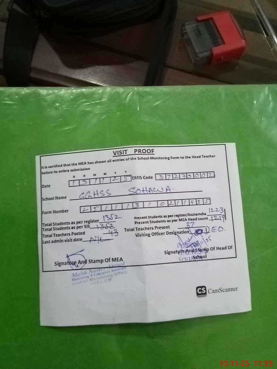 | Name: Gh**** An**** Designation: (School Headmaster's/Headmistress's) PRINCIPAL Phone/Cell Number: 03**** |
