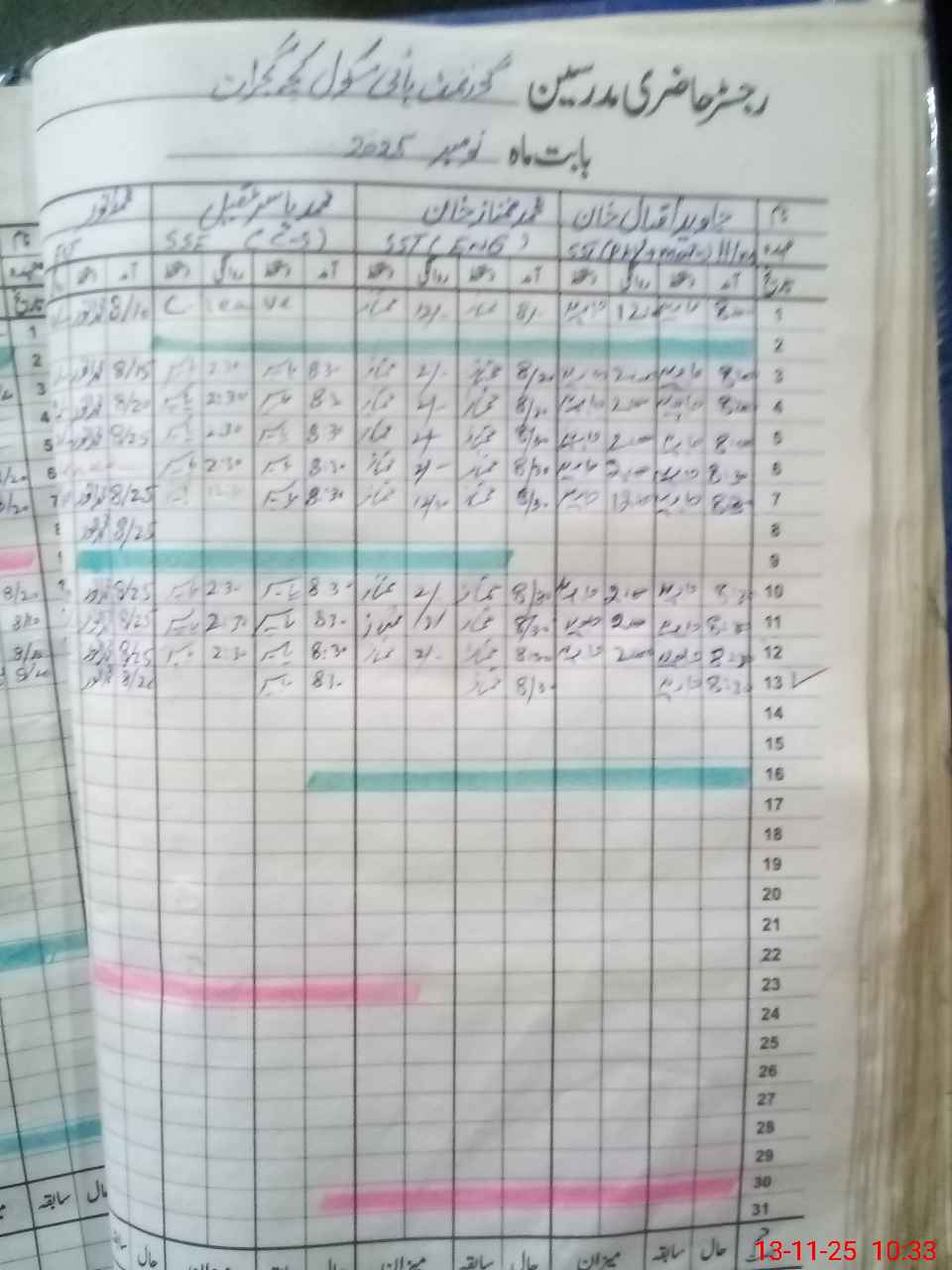 | CNIC | Full Name | Designation | R/C | Absence During Last Calender Month |
