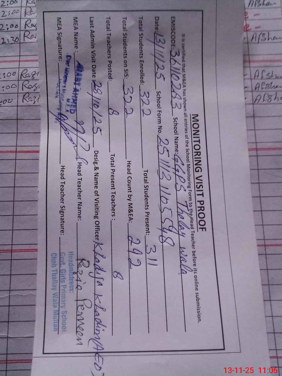 | EMIS Code: 36110283 | Name of School: GGPS THALAY WALA FAROOQ PURA DOUBLE PHATIK OLD SHUJABAD ROAD | |||