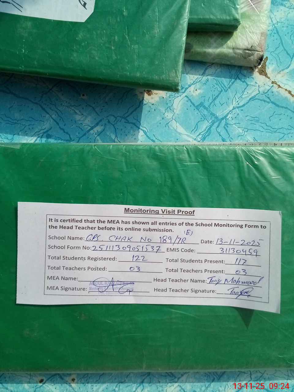 | EMIS Code: 31130459 | Name of School: GPS CHAK NO 189 7R(E) | |||