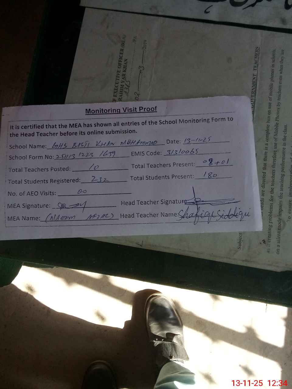| EMIS Code: 31310065 | Name of School: GHS BASTI KHAN MUHAMMAD | |||