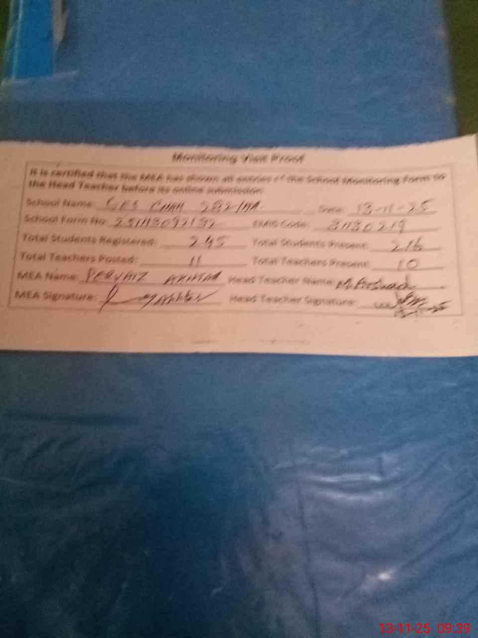 | EMIS Code: 31130219 | Name of School: GES CHAK 282 HR | |||