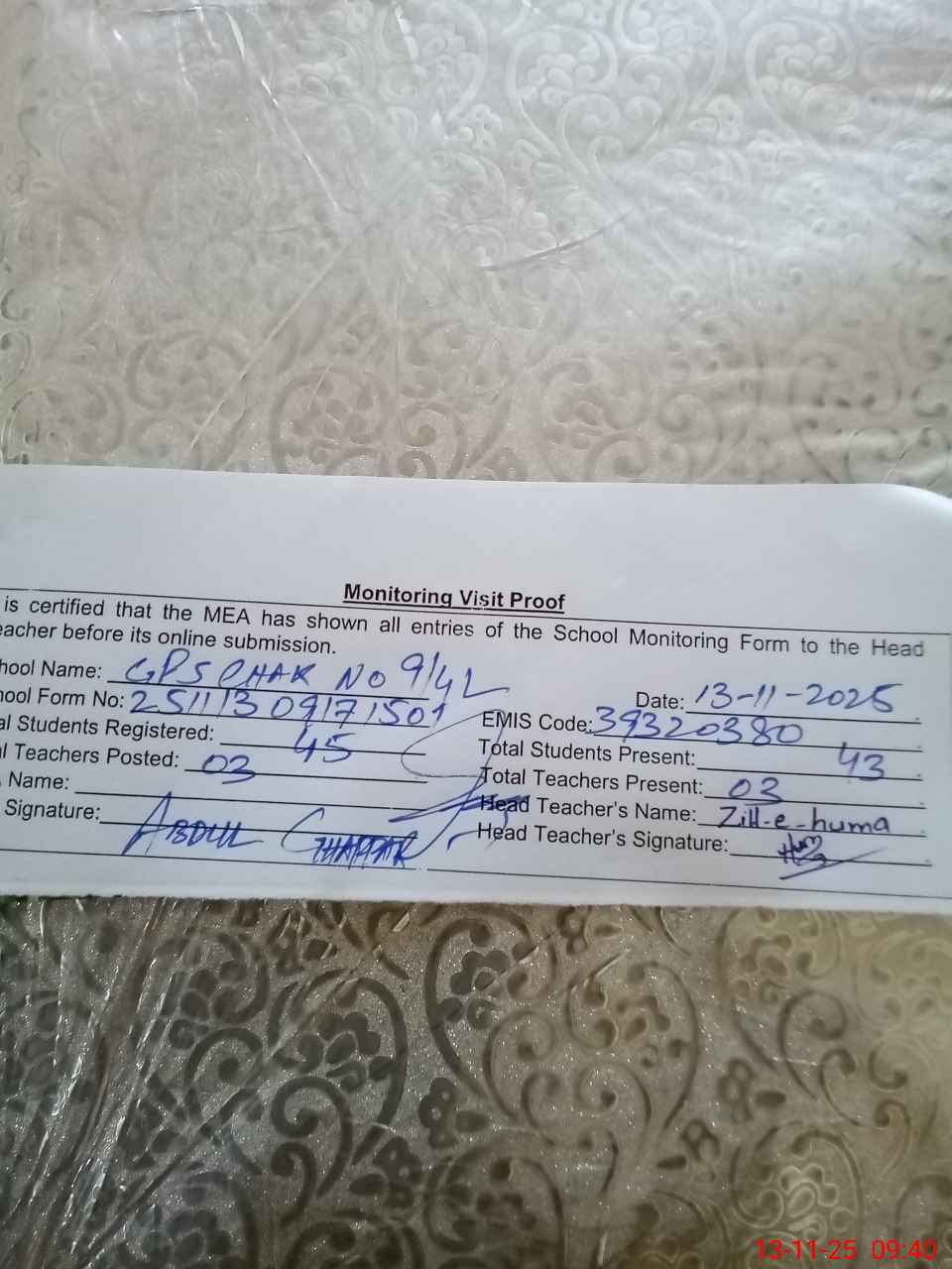 | EMIS Code: 39320380 | Name of School: GPS CHAK NO 9/4-L | |||