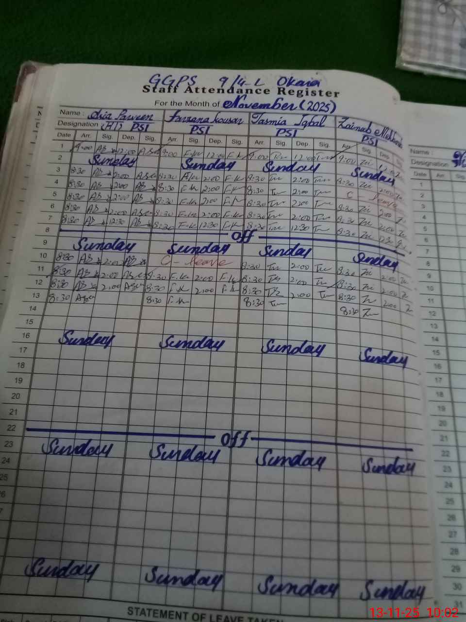 | Leave | Duty | Absent | Maternity | Medical | Ex- Pak |