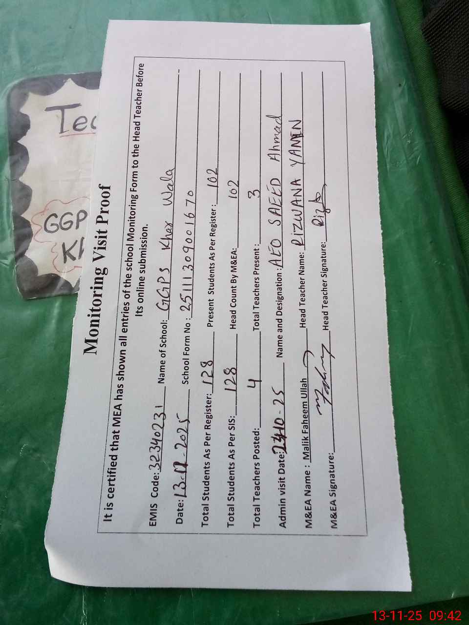 | EMIS Code: 32340231 | Name of School: GGPS KHAR WALA | |||