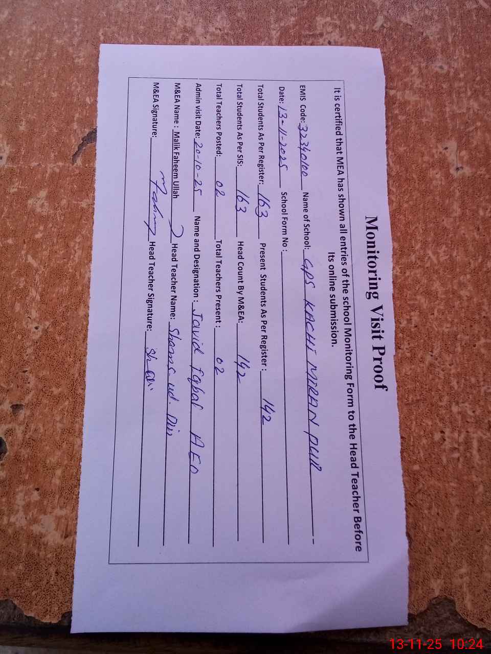 | EMIS Code: 32340100 | Name of School: GPS KACHI MIRAN PUR | |||