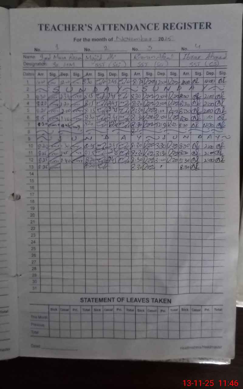 | Name: Sy**** Mu**** Ra**** Designation: (School Headmaster's/Headmistress's) SR.HM Phone/Cell Number: 03**** |