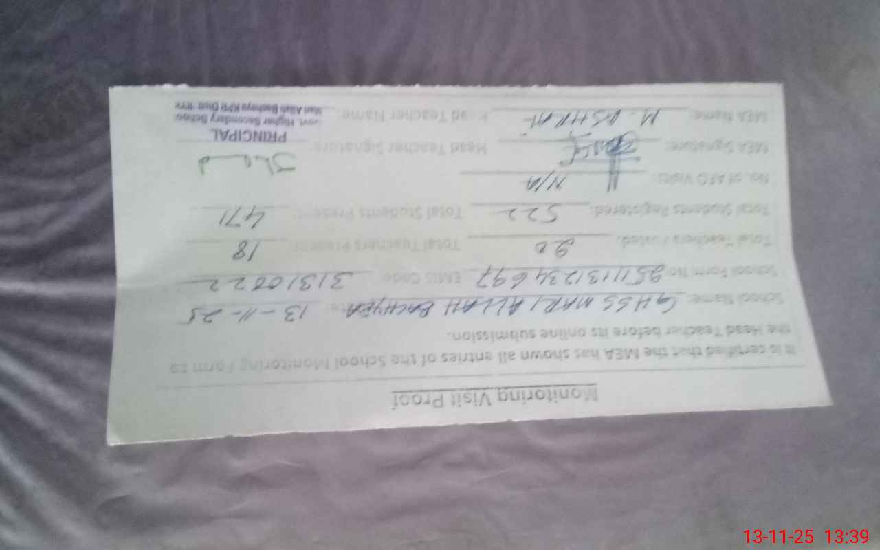 | Certified that this School was Inspected by the Undersigned MEA/DMO Today and the Information Stated Above is as Per Record. | |||||