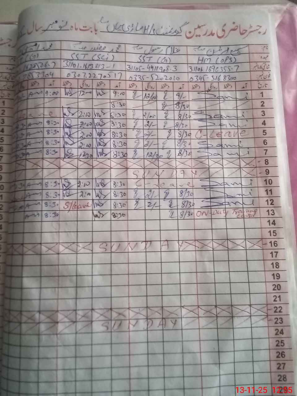 | CNIC | Full Name | Designation | R/C | Absence During Last Calender Month |