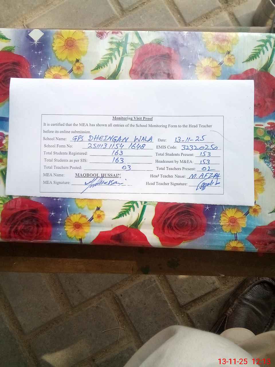 | EMIS Code: 32320250 | Name of School: GPS DEINGAN WALA | |||